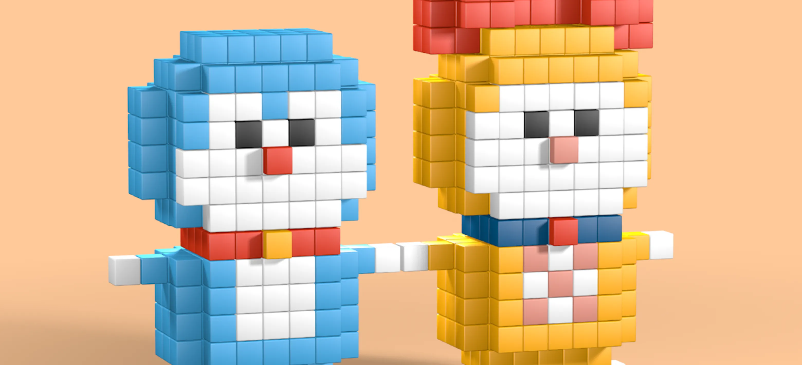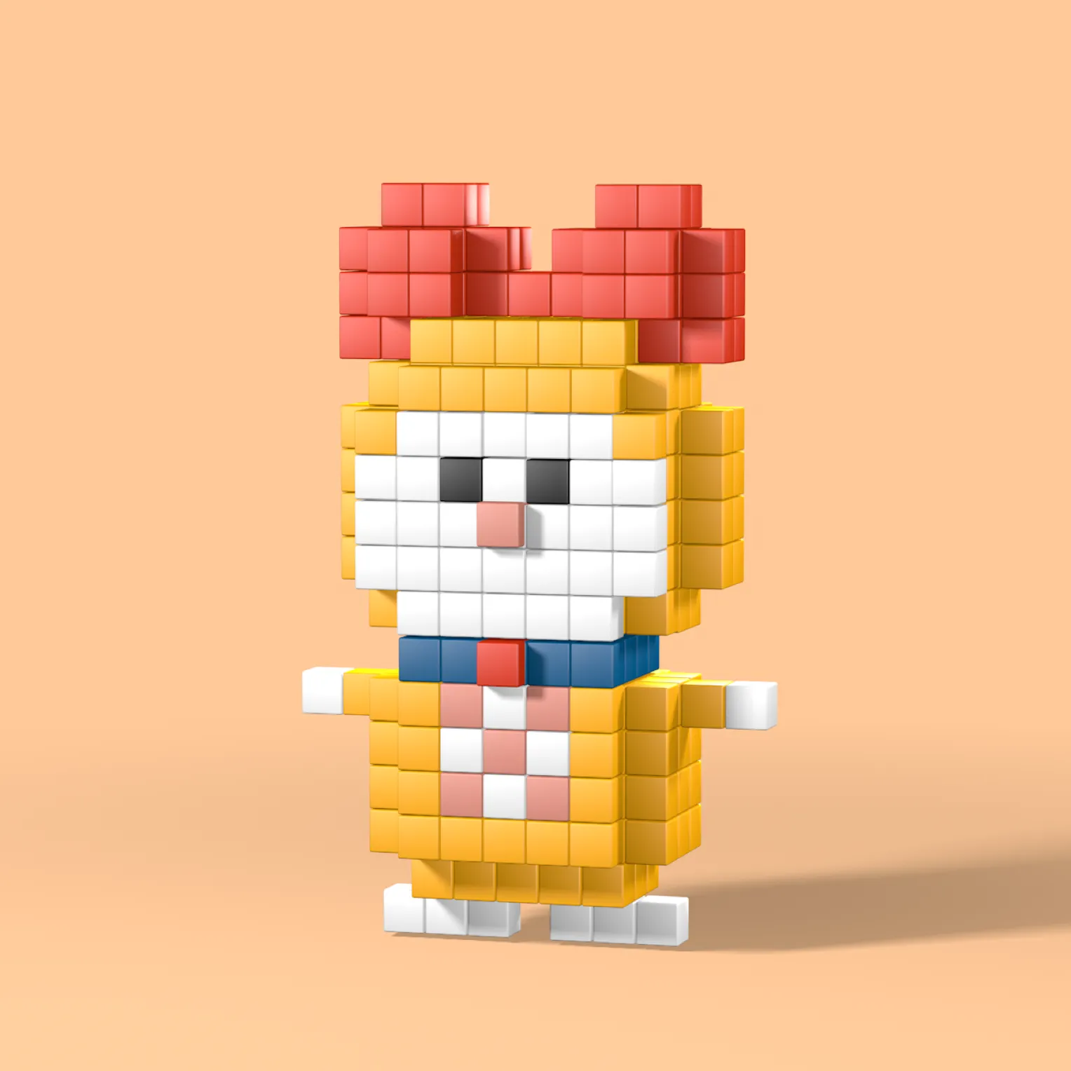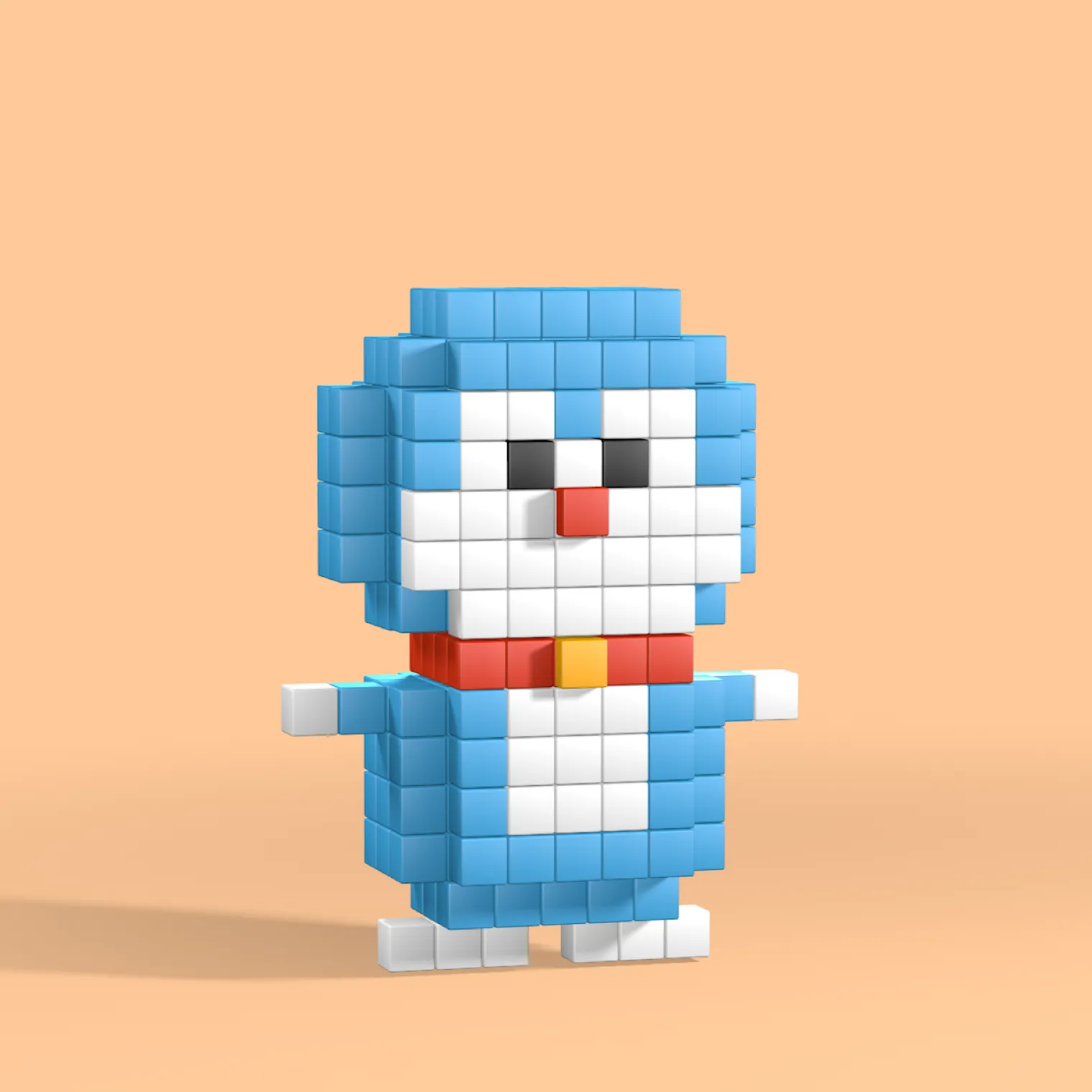 For this project I had to create a 3d model in pixel style with not a lot of details, only structurred with cubes. I decided to illustrate Doraemon, a caracter from a japanese tv series.