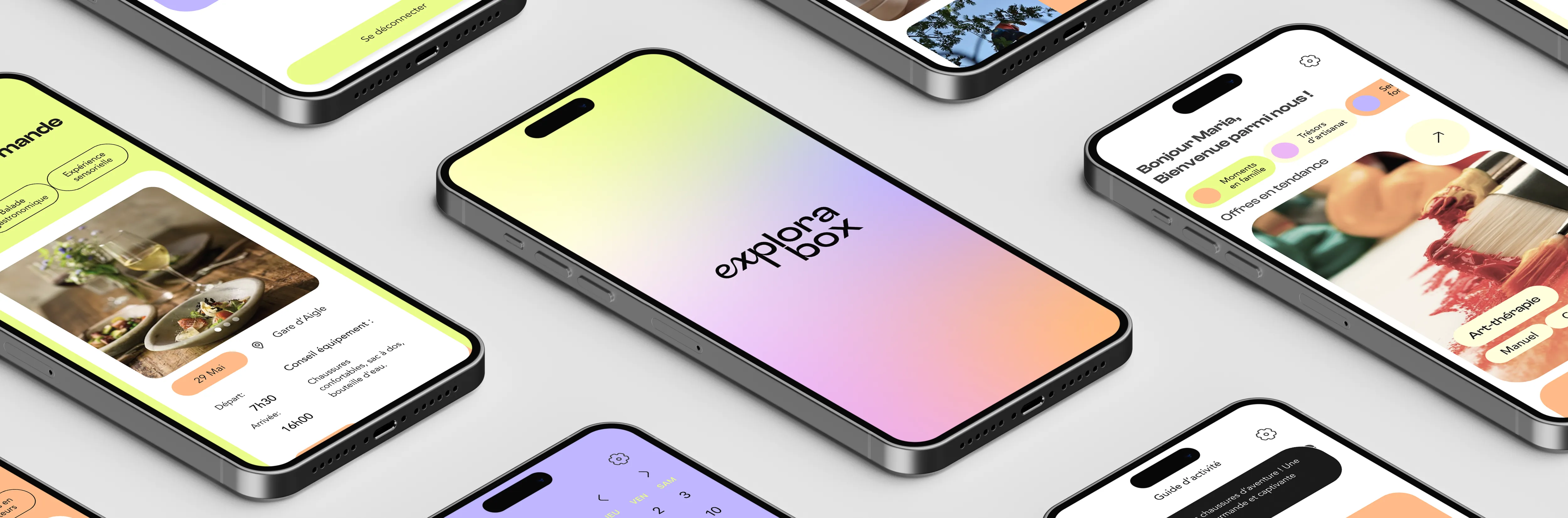 The purpose of this project was to develop the branding and create a prototype for the "Explorabox" application, as well as to produce promotional videos for the new brand.