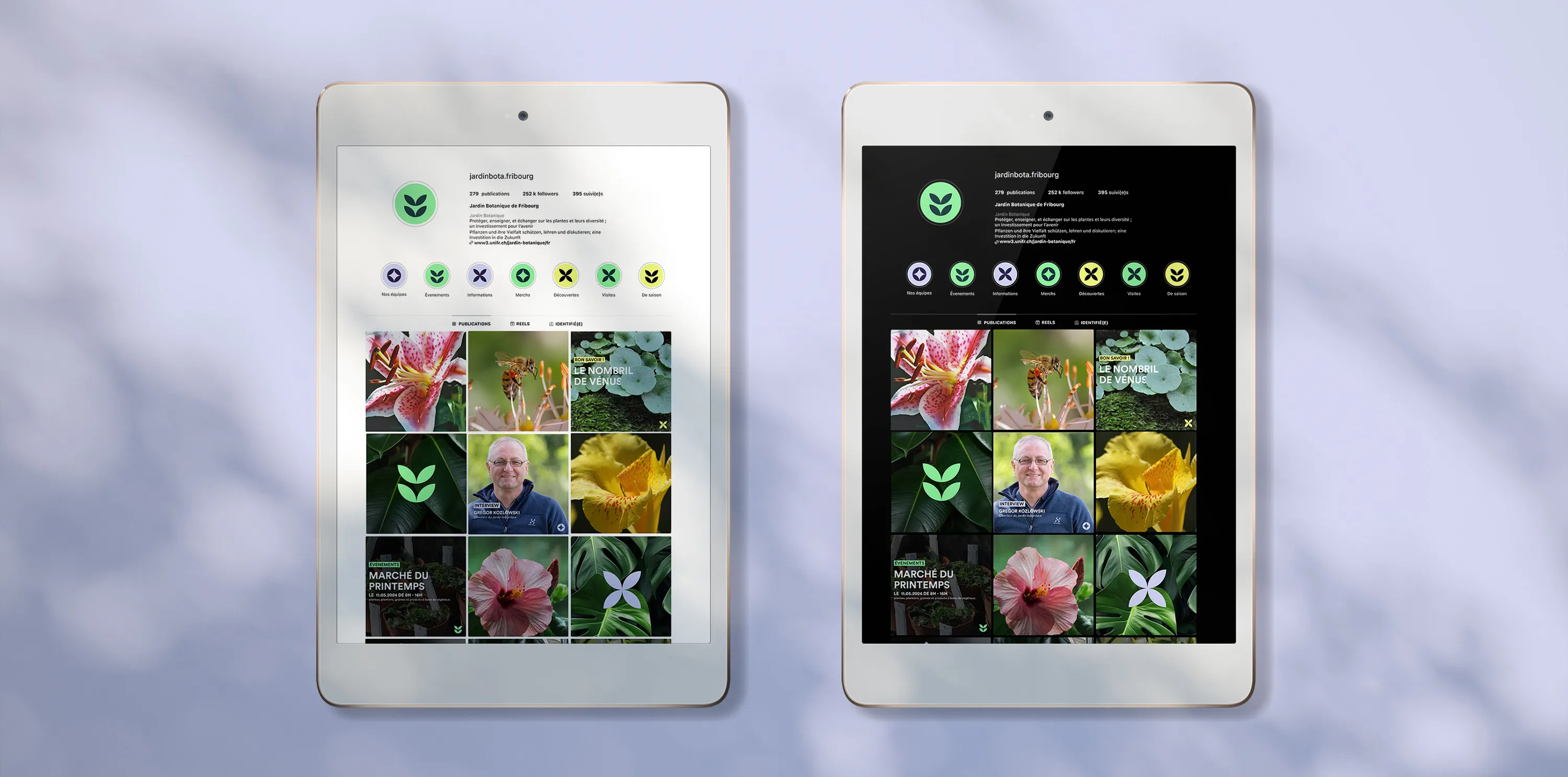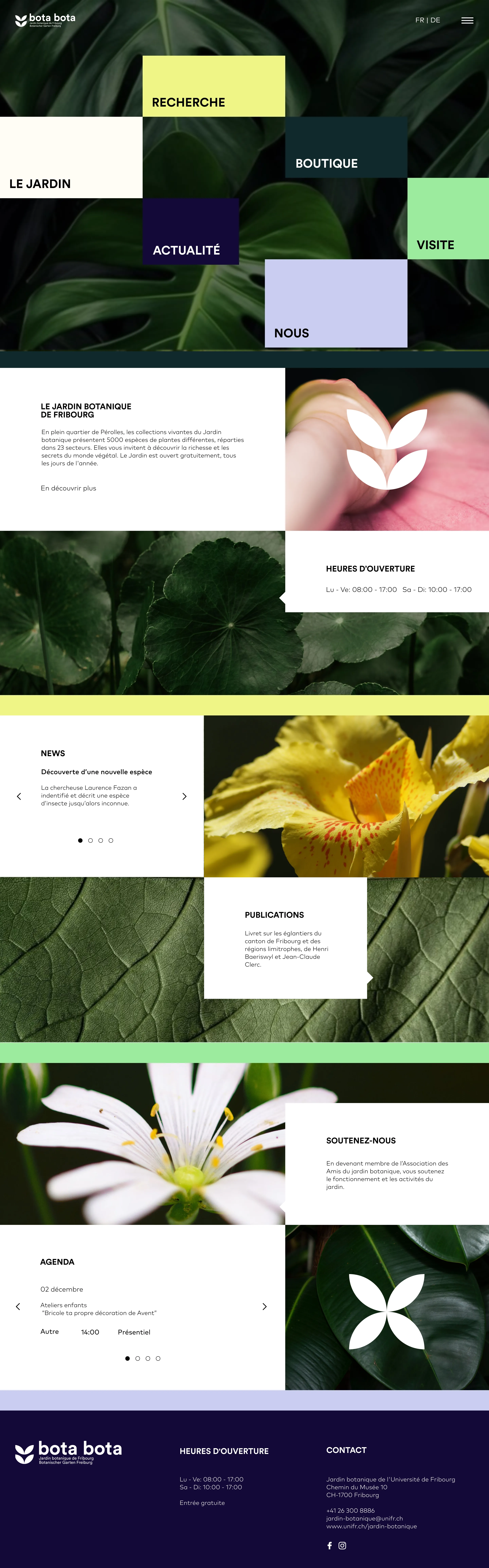 This was a group project, I worked with Emma Baeriswyl, and we had to rebrand and propose a new visual identity for "Bota Bota" the botanical garden of Fribourg.